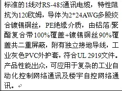 1.RS485信號(hào)線,RS485數(shù)據(jù)電纜,RS-485通訊電纜,新型特種復(fù)合J緣和外護(hù)套材料,鍍錫屏蔽,抗干擾能力強(qiáng);