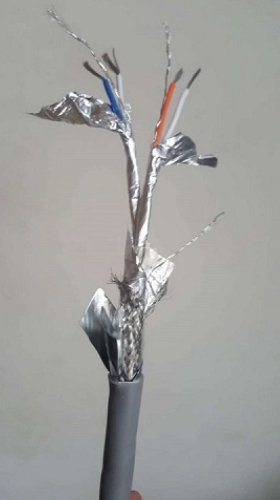 2線對4芯(2x 2x24AWG)(2*2*0.2)(2*2*0.5)(2*2*0.75)(2*2*1.0)(2*2*1.5)多股絞合鍍錫銅絲,PE絕緣護套;為適用于復雜的工業噪聲環境,特采用鋁箔/聚酯復合帶100%屏蔽率+鍍錫銅編制網90%屏蔽率共雙重屏蔽,并附有獨立TC接地導體,工業灰色PVC外護套,特性阻抗120歐姆 。