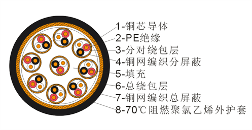 銅芯聚乙烯絕緣阻燃聚氯乙烯護(hù)套銅帶總屏蔽計(jì)算機(jī)用電纜 |